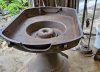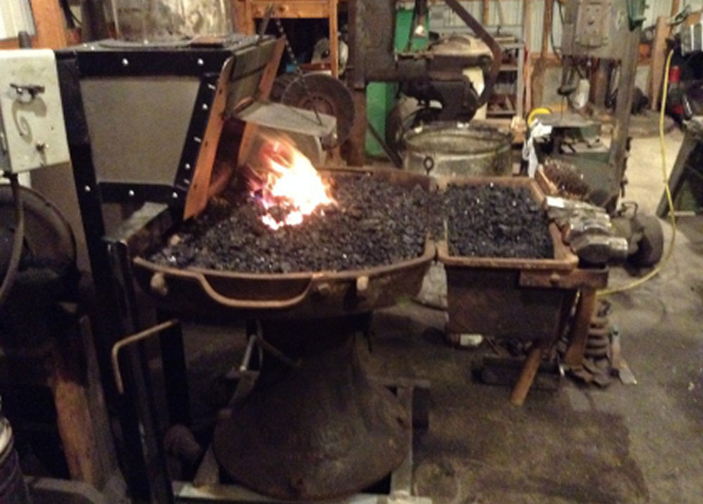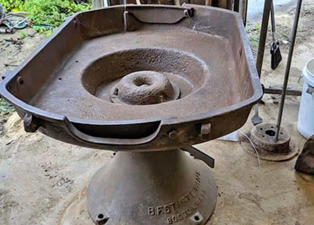 - The base, spreading out at the bottom, is a single casting with holes in the flange to secure the forge to the floor.