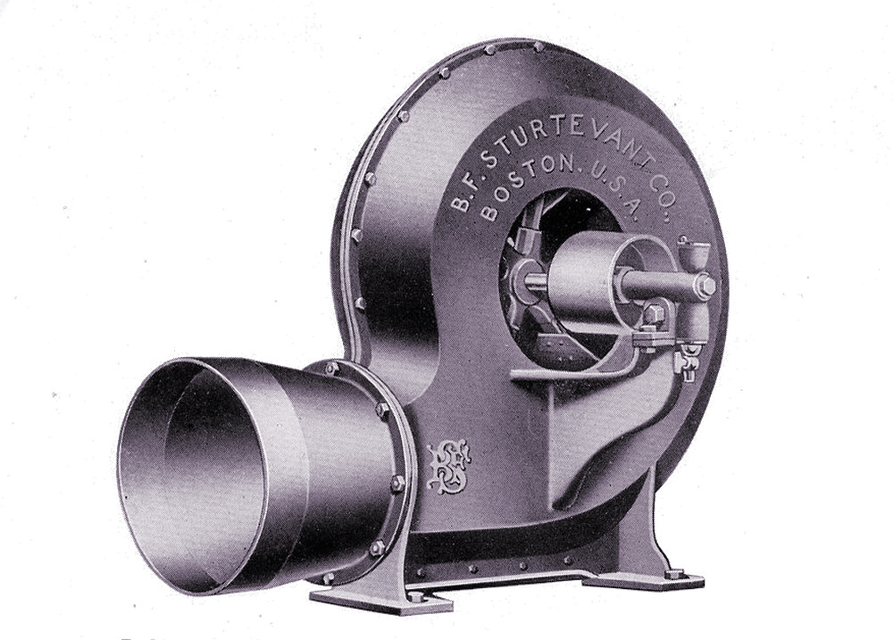Cast iron housing fan that could provide blast for forges and ovens, supply air for cooling motors and as an exhauster could remove dust from machinery.