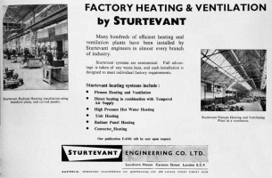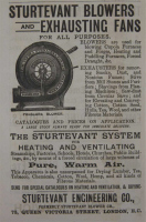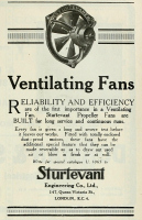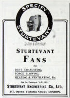 B.F.Sturtevant put their technological leadership to work with the construction of one of the first industrial air conditioning systems in the British Isles around 1907, as they did in America. During WW1, a monthly newsletter appropriately called "War Letters" was produced and sold in Europe and America (10 cents). It provided vivid details of life on the front from SE personnel who had volunteered and was also used to solicit funds for the American Ambulance Service, based in Paris, from readers. B.F.Sturtevant also provided monetary contributions.