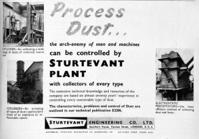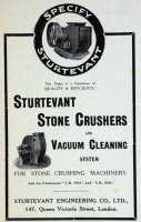 Also in 1906, at the time of exiting electrical equipment, they entered the crushing and grinding machine business that would be a core line, becoming distributors of Sturtevant Mill Co.(Boston/USA). In 1911 they had a 20 year agreement to manufacture using patents and know-how licensed from Sturtevant Mill, also preventing them from selling into the UK market. At the conclusion of the agreement, Sturtevant Mill's attempt to enter the market in 1936 was thwarted by English law that upheld the right of the established English company to restrain the use of the Sturtevant name.